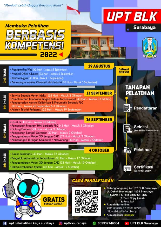 UPT BLK SURABAYA MEMBUKA PELATIHAN BERBASIS KOMPETENSI 2022