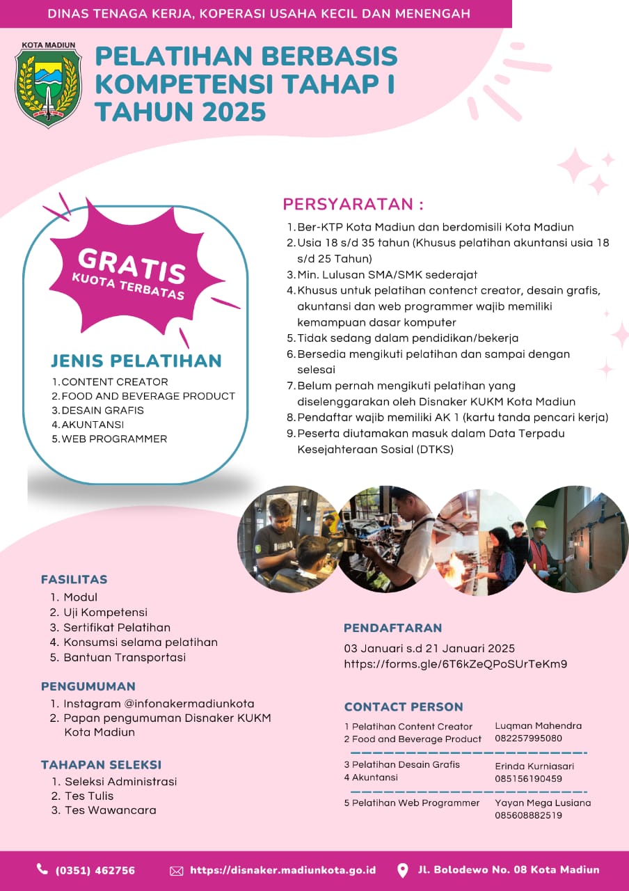 UPT BLK MADIUN MEMBUKA PENDAFTARAN PELATIHAN TAHAP III TAHUN 2022