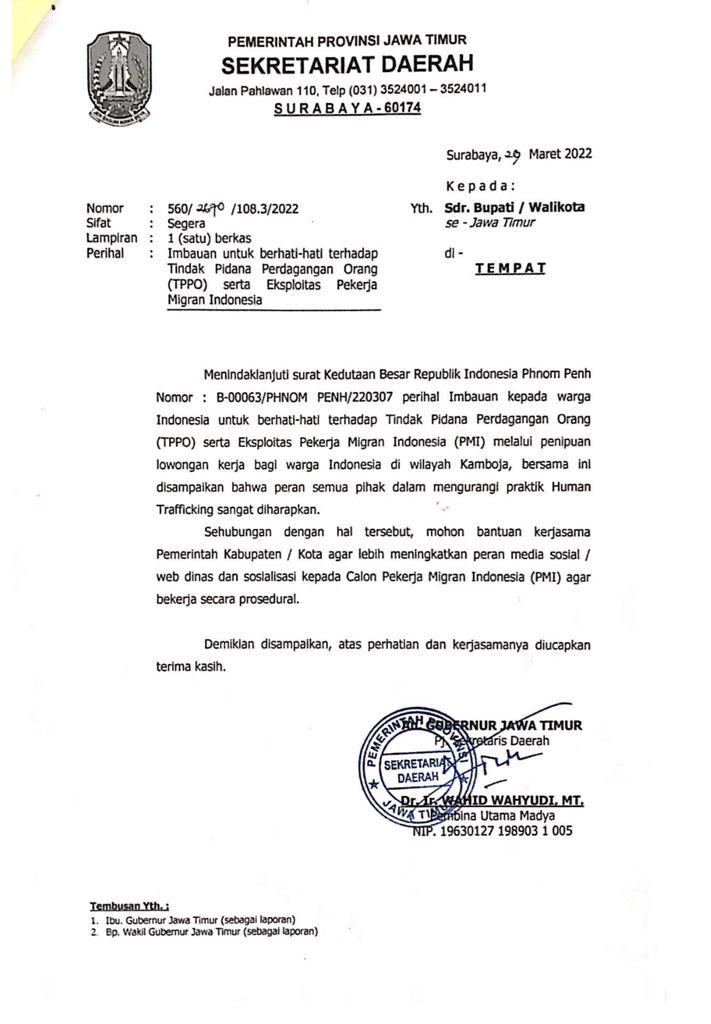 Menindaklanjuti surat Kedutaan Besar Republik Indonesia Phnom Peng Nomor : B-00063/PHNOM PENH/220307 perihal Imbauan kepada warga Indonesia untuk berhati-hati terhadap Tindak Pidana Perdagangan orang (TPPO) serta Eksploitas Pekerja Migran Indonesia (PMI) melalui penipuan lowongan kerja bagi warga Indonesia di wilayah Kamboja, bersama ini disampaikan bahwa peran semua pihak dalam mengurangi praktik Human Trafficking sangat di harapkan.