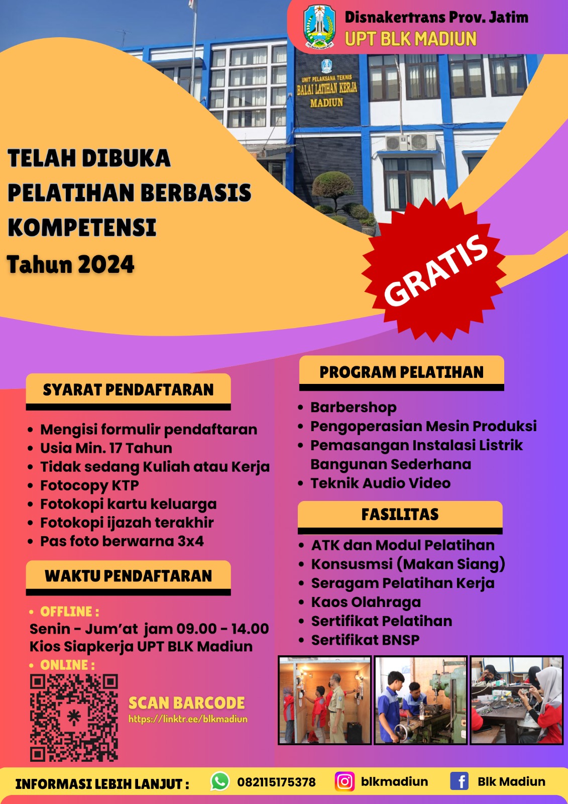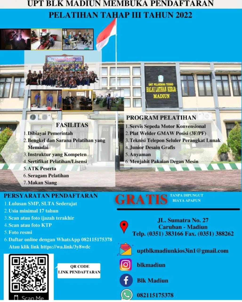UPT BLK MADIUN MEMBUKA PENDAFTARAN PELATIHAN TAHAP III TAHUN 2022